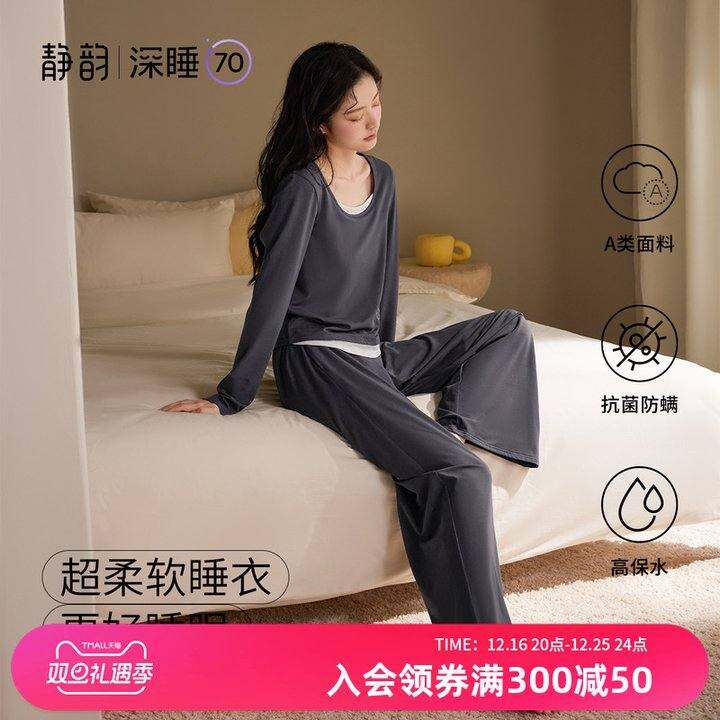 静韵【深睡70】超柔软带胸垫睡衣女春秋款莫代尔长袖可外穿家居服