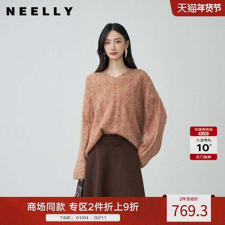 NEELLY纳俪商场同款冬季新款慵懒随性圆领针织衫女宽松休闲毛衣
