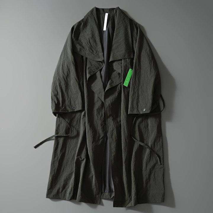 外贸尾单防风防泼水日系宽松复古大版廓形翻领收腰长款风衣外套男