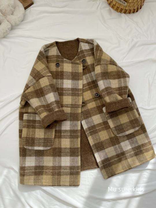 艺术生正反两面穿纯手工小个子儿童双面羊毛大衣女童中长款外套