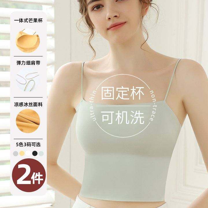美背内衣女小胸聚拢一体固定杯可外穿吊带背心式抹胸文胸夏季冰丝