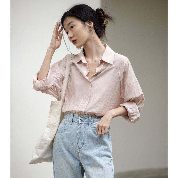 觅定粉色白色长袖衬衫女秋季新款设计感小众衬衣外套法式上衣春秋