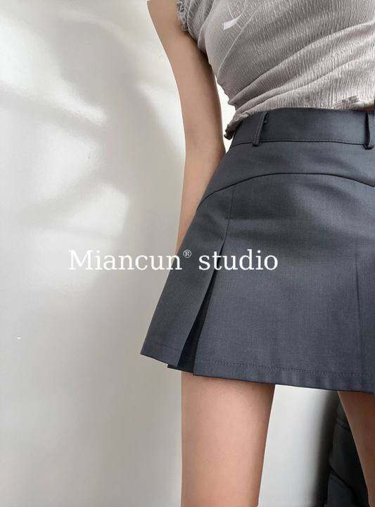 棉村美式复古学院风半身裙高腰防走光内衬西装短裙百搭灰色包臀裙