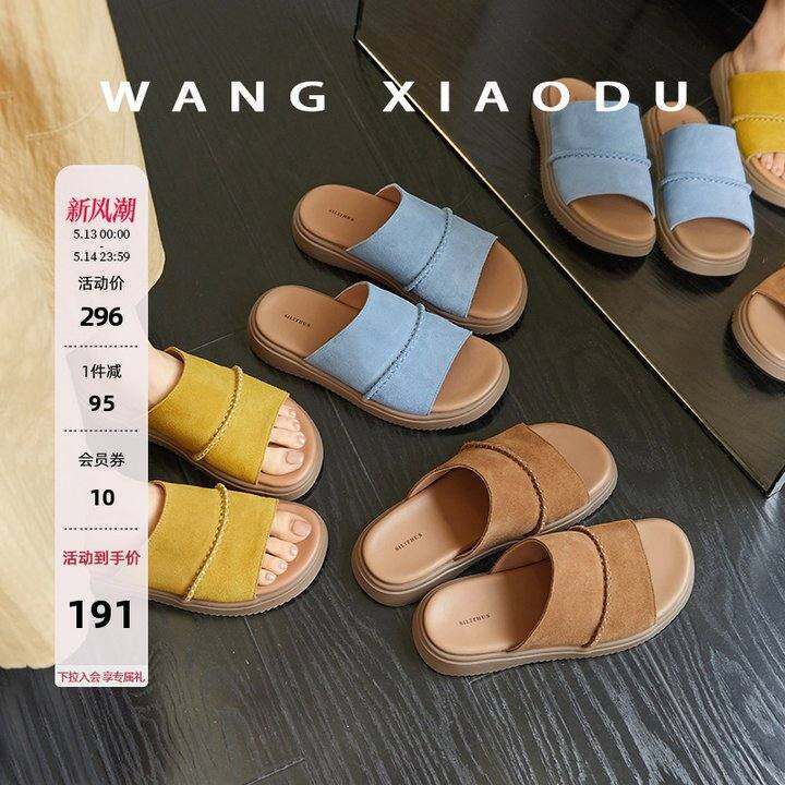【王小毒】晴空画布●牛反绒一字拖女2025夏季多巴胺厚底沙滩拖鞋