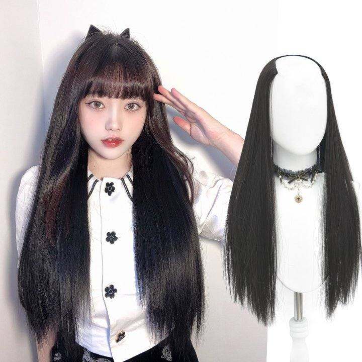艾妃U型半头套假发女长发黑长直假发片一片式无痕接发自然蓬松夏