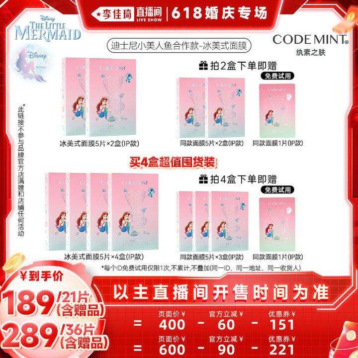 【李佳琦直播间婚庆专场】codemint纨素之肤冰美式钻标版面膜
