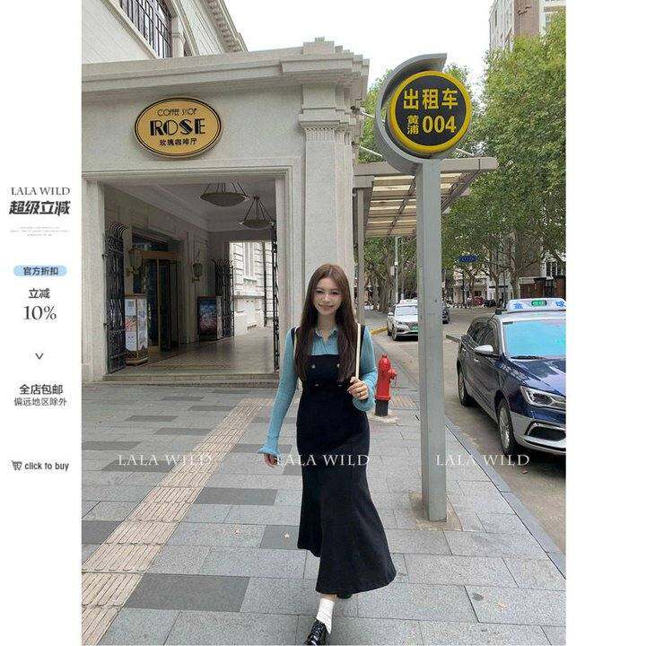 野生辣辣微胖 假两件洋装秋季2025新款高级感拼接显瘦气质长裙