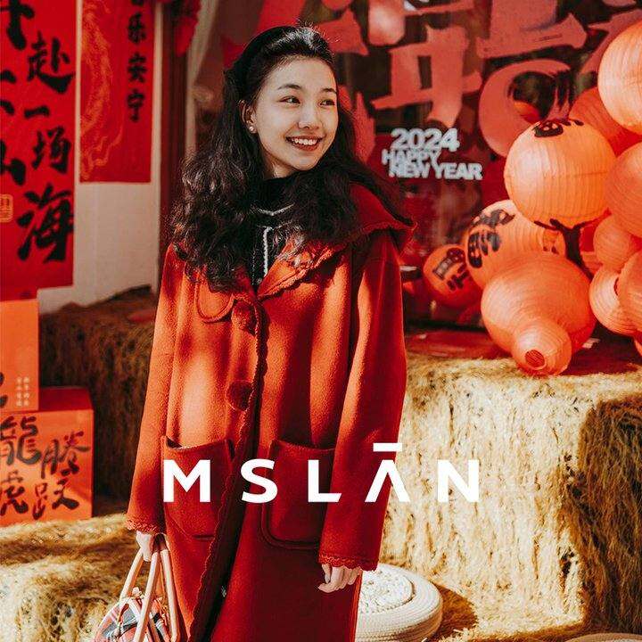 【圣诞红】MSLAN秋冬休闲连帽双面呢重工保暖大衣外套MFDW190