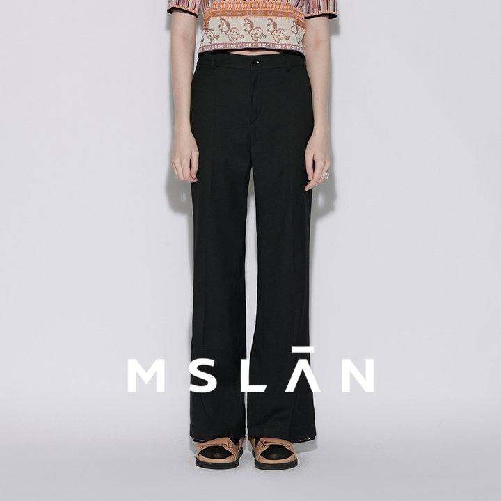 MSLANoutlet春季拼接蕾丝微喇裤修身长裤女MEBN6401