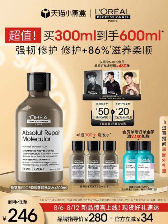 【立减12%】欧莱雅PRO瞬顺奢润洗发水滋润洗发露持久受损修护