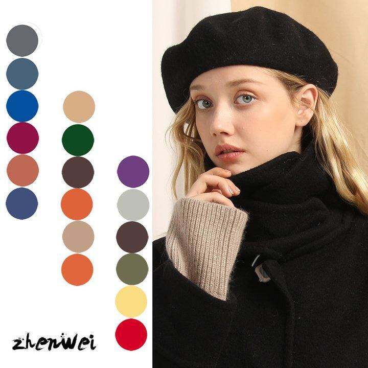 石原里美羊毛贝雷帽女英伦复古大头围黑色画家秋冬毛呢帽子蓓蕾帽
