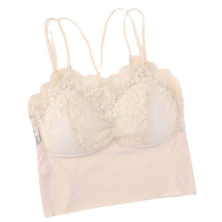 黛美芮5520蕾丝吊带女带胸垫一体固定杯美背抹胸打底内搭背心上衣
