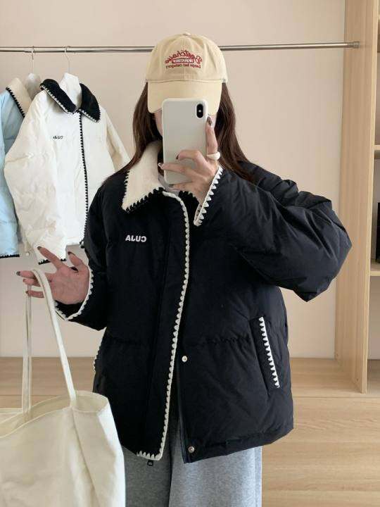 贝壳绣羊羔毛翻领羽绒服女短款2025年冬季新款韩系小个子加厚外套