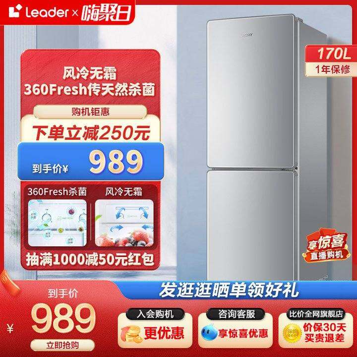 Leader海尔智家170L双开两门小型家用租房宿舍风冷无霜低噪电冰箱
