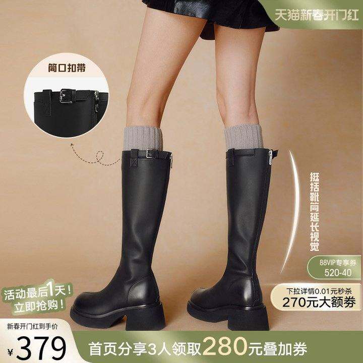 【徐璐明星同款】百思图都市朋克冬商场新款骑士女长靴M5603DG4