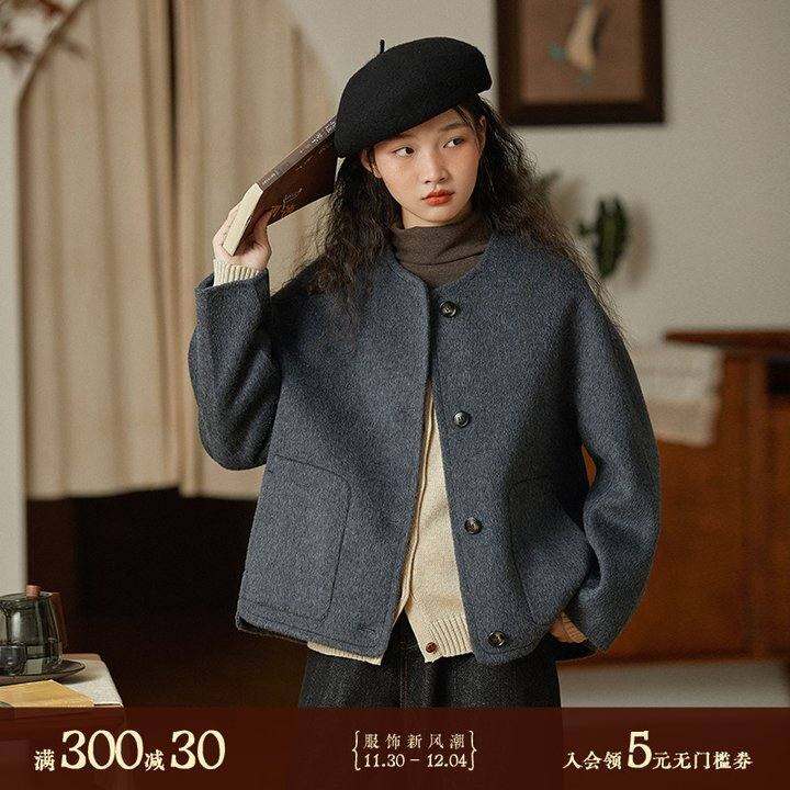 边缝原创复古休闲深灰双面呢毛呢外套女冬季加厚短款羊毛呢子秋冬