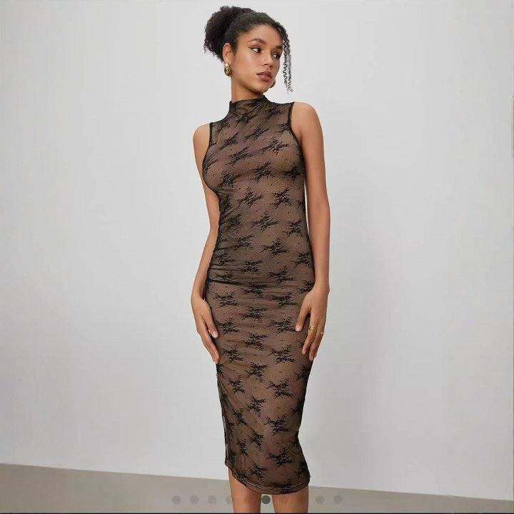 猫猫go 外贸C 网纱辣妹复古印花吊带mini连衣裙