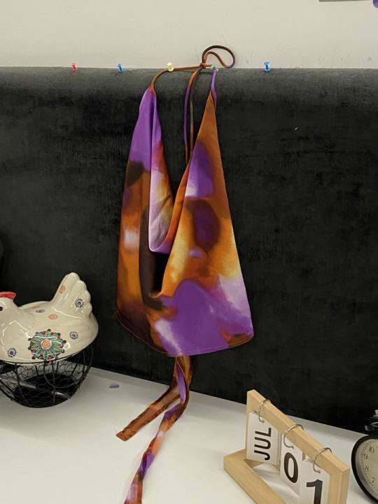 【邓邓实拍】比gw还早上的款! 落日晚霞@油画印花挂脖露背吊带