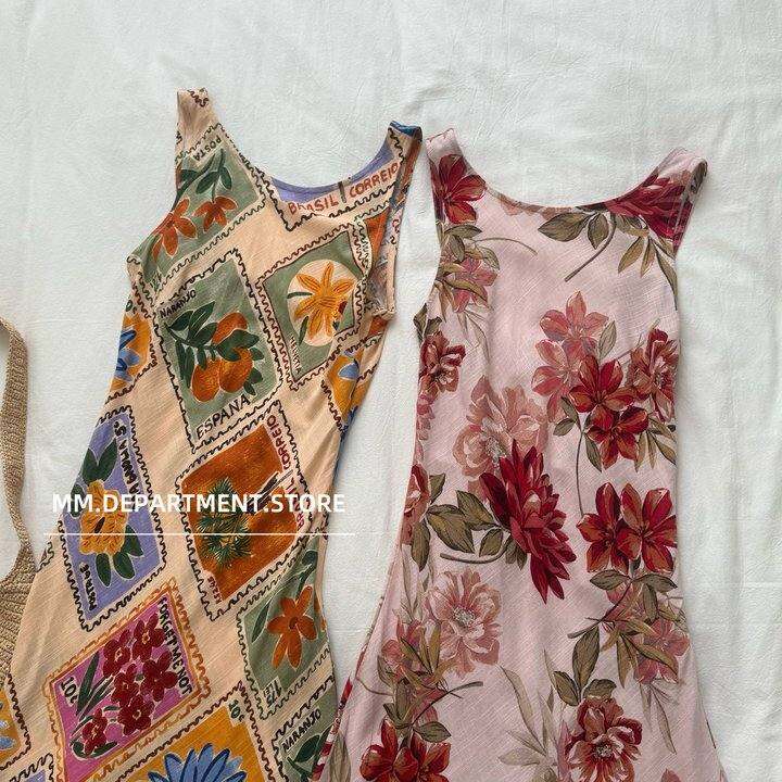 独家~哇!惊喜好货 澳洲小众超级大摆印花长款亚麻连衣裙
