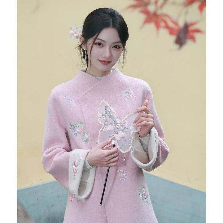 冯(CHAOMEI【水蜜桃】国风紫刺绣100羊毛双面呢外套+半裙TG02445