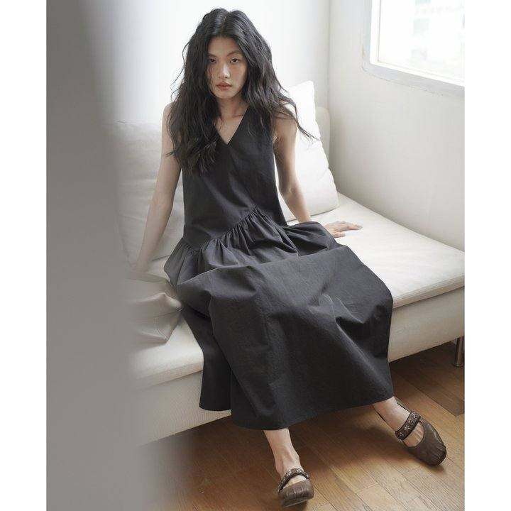 EighthMonth 法式气质v领背心连衣裙女夏季新款黑色高腰无袖裙子