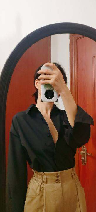 抗皱免烫顺滑宽松版型长袖衬衫剪标小瑕疵特价黑白色显瘦加大码