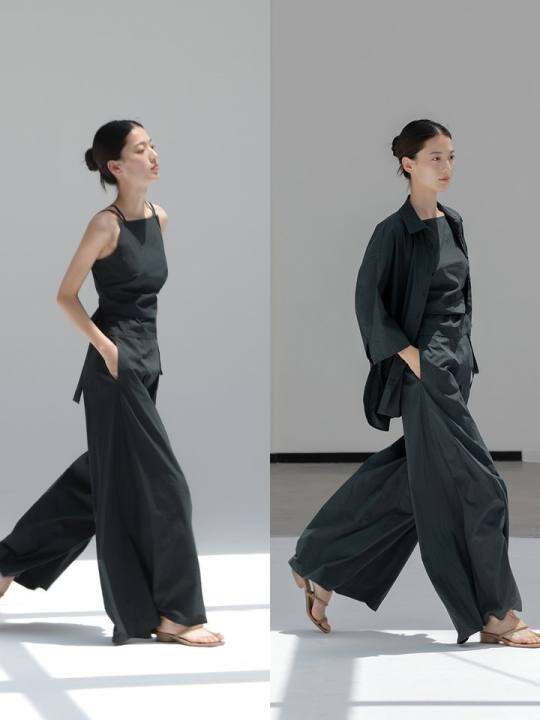 显瘦帅气套装设计感小众垂感高级感宽松阔腿裤夏/背心/衬衫