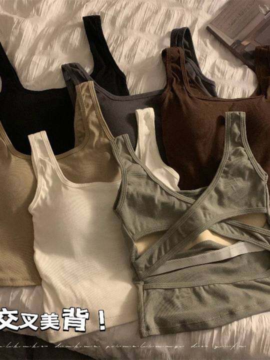 交叉镂空露背带胸垫背心吊带女2024夏季新款辣妹内搭外穿美背上衣