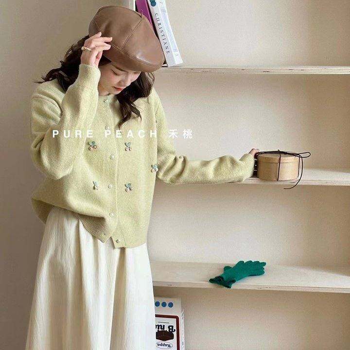 2024春秋韩系羊毛针织开衫法式甜美温柔软糯圆领百搭减龄毛衣外套