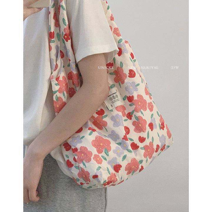 章若楠同款碎花包包女2023新款潮韩国帆布包学生上课大容量布包
