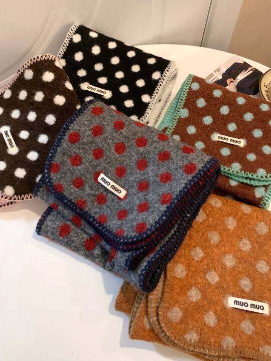 双面波点软糯毛绒针织围巾女秋冬保暖韩系氛围感学生防寒护颈围脖