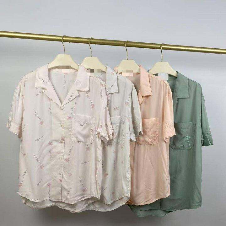 尾货 男女夏季 人造棉+莱赛尔开衫短袖家居服上衣薄款透气凉感