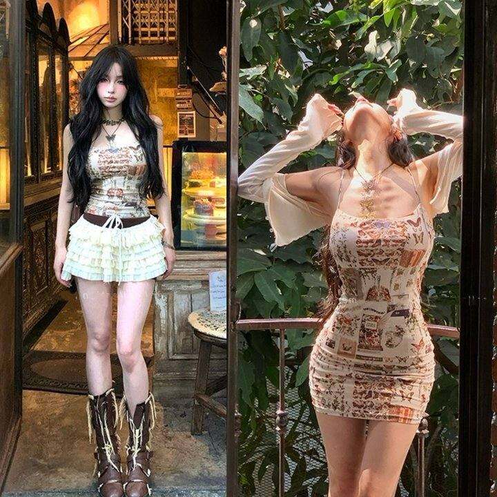 包邮@原! 奶御小野马收腰显瘦碎花画卷吊带背心+吊带裙~