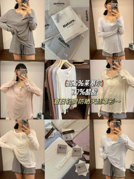 包邮@ 莱赛尔+醋酸/慵懒纯欲博主调!三粒扣轻薄防晒罩衫上衣~