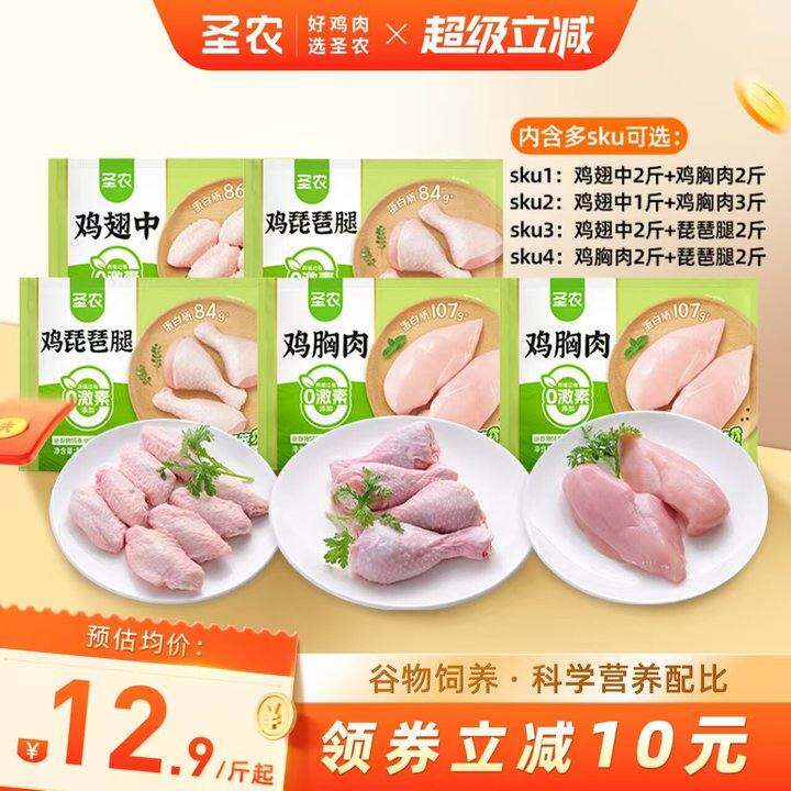 圣农鸡胸肉鸡翅中琵琶腿鸡肉冷冻生鲜家庭烧烤食材2斤多组合可选
