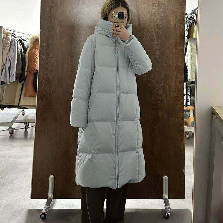 MILK PEACH【豆腐块长款】90鹅绒长款羽绒服连帽过膝显瘦面包服