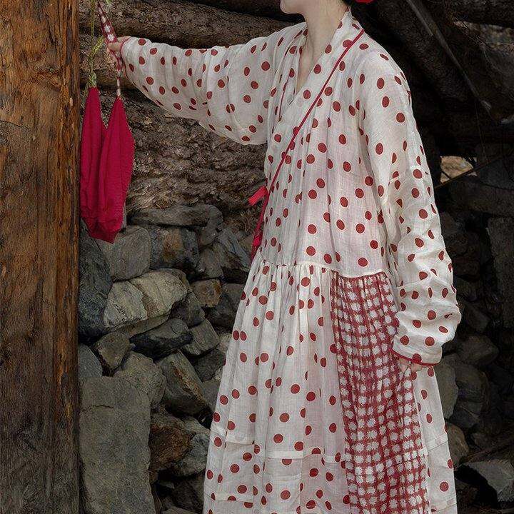 裳宫语【致林檎】明制贴里汉服波点连衣裙吊带苎麻日常2026春上新