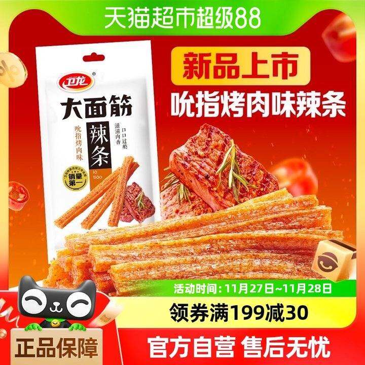 【新品上市】卫龙辣条吮指烤肉味大面筋65g休闲零食小吃豆干凑单