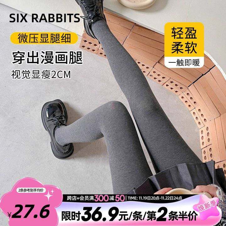 六只兔子漫画腿打底裤女显瘦连裤袜踩脚黑灰色裤袜秋冬2024升级