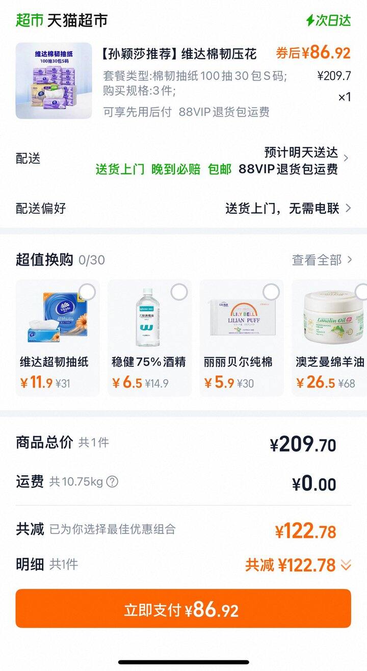 一些不是每个账号都有的折扣:弹限时94折,猫超搜定妆喷雾会有5美妆金。