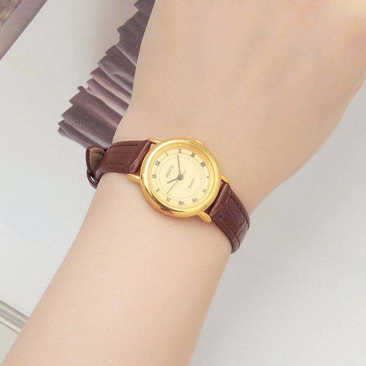原装沙鸥牌韩版时尚圆形罗马刻度金色真皮表带女款石英表库存全新