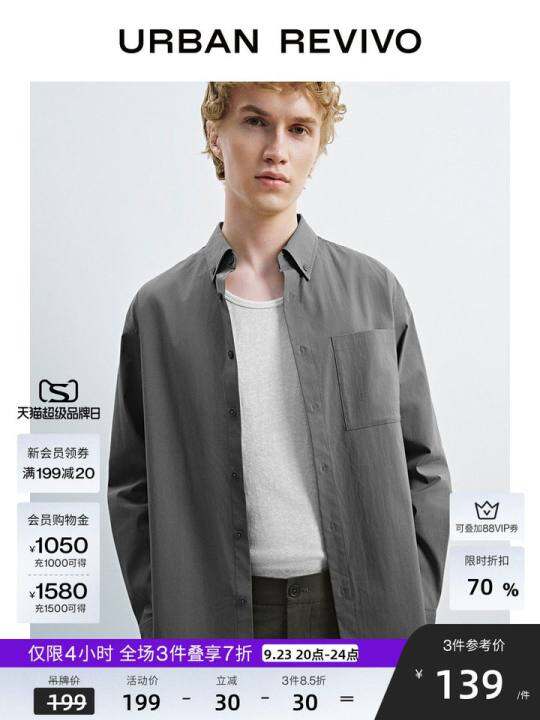 UR2025秋季新款男简约气质通勤风口袋长袖开襟衬衫UMB250005