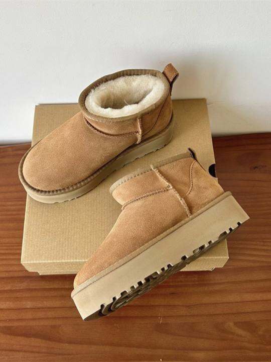 河南桑坡村羊皮毛一体真皮羊毛松糕厚底增高雪地靴女冬季短筒短靴