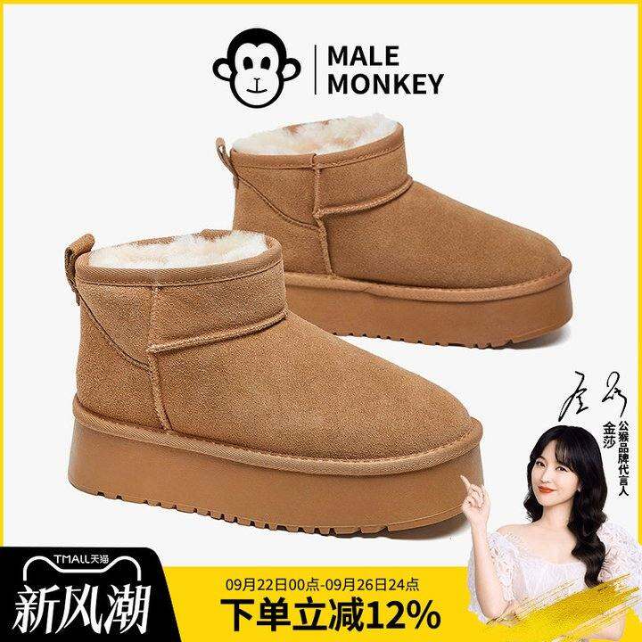 公猴真皮厚底雪地靴女冬季新款真羊毛加棉保暖棉鞋小个子增高短靴