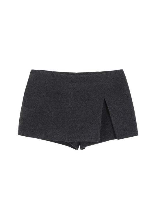红人馆毛呢半身裙女秋冬2025新款a字灰色包臀裙子小个子显瘦短裙