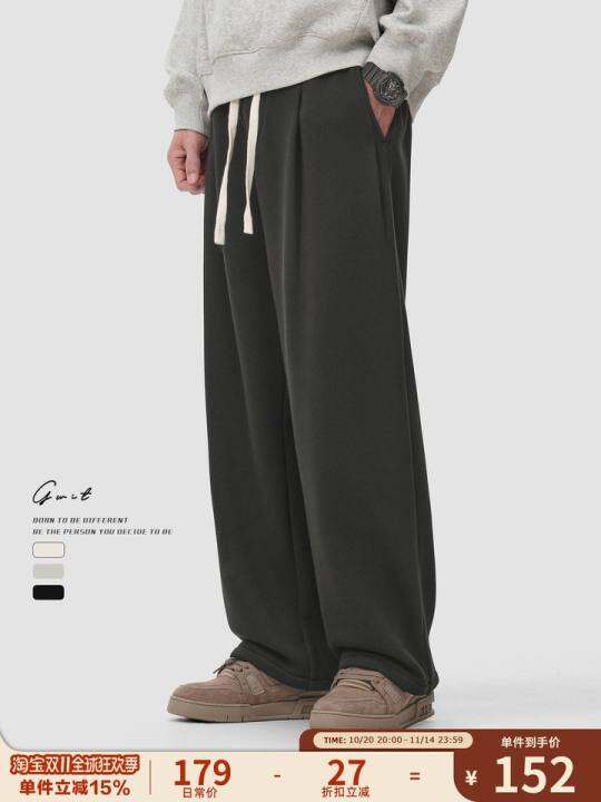 GWIT 三色加绒经典款垂感阔腿卫裤冬季重磅加厚保暖运动休闲裤男