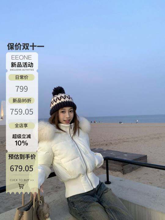 周壹 EEONE10.15/10:00am 韩女日记 可拆真毛领 绒内胆收腰羽绒服