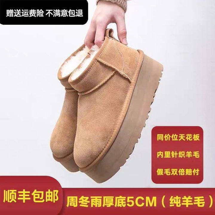 松糕厚底雪地靴女款冬季2024新款加绒加厚增高5cm河南桑坡村棉鞋