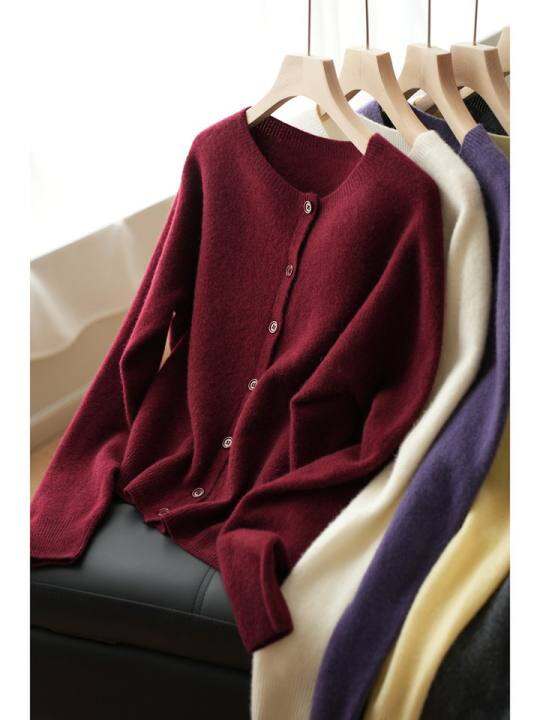 反季福利无补 女士羊毛针织衫 无缝圆领开衫 秋冬款女装