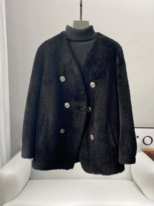 2024秋冬新款颗粒羊羔毛皮毛一体中长款外套皮草大衣V领羊剪绒女